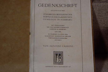 Alfonso Cassuto, Gedenkschrift zum 275jährigen Bestehen der port.-jüdischen Gemeinde in Hamburg (Amsterdam 1927)