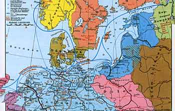 ab 1230 Formierung der Städtehanse, die genossenschaftliche Organisation der Kaufmannshansen genügte den steigenden Anforderungen nicht mehr. Kriege, Seeraub, Anarchie durch den Verfall der Reichsgewalt und Konflikte mit den Landesherren führen zu Städtebündnissen für Selbstschutz, Rechtssicherheit und Entwicklung von Handel und Gewerbe. Die Hanse betreibt die schwierige Vereinheitlichung von Maßen, Münzen, Preisen und des Stadtrechts. So fand z.B. das lübische Stadtrecht Verbreitung in vielen bedeutenden Städten des Ostseeraumes.