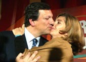 Feiert den Sieg mit seiner Frau: Der Sozialdemokrat José Manuel Durão Barroso. Foto: dpa