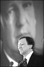 Dass Durão Barroso die hart umkämpfte absolute Mehrheit verfehlte, hat er sich selbst zuzuschreiben. Nach den Skandalen der PS-Regierung, dem klaffenden Haushaltsloch - zwischen 2,2 und 5 Prozent - und dem "blauen Brief" der EU-Kommission erteilten die Portugiesen seiner Gegnerpartei schon bei den Kommunalwahlen im Dezember einen Denkzettel. Premier Antonio Guterres trat umgehend zurück. Doch Durão Barroso machte im Wahlkampf unpopuläre Steuerversprechen an die Unternehmer, gefährdete durch einseitige Baustopps seiner neuen Bürgermeister die ersehnte Fußball-Europameisterschaft 2004 und verstieg sich zu Formeln wie "kein neuer Flughafen ohne sichere Rente". Dabei sind die Infrastrukturleistungen zum großen Teil EU-finanziert.