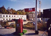 Es war eine ganz neue EURO-Palette, welche uns Th.Reimler & Co. Nfl. GmbH aus Oststeinbek geliehen hat. Sie war 120 cm lang und 80 cm breit und auf ihr sollte das Rednerpult bei der Einweihung stehen und die Rednerinnen und Redner auch.