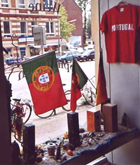 Claro que a febre das bandeiras se propagou até às comunidades lusas no estrangeiro. E Hamburgo não foi nenhuma excepção: muitas bandeiras nos bairros com grande concentração de residentes portugueses, nos restaurantes, mercearias e cafés lusos, que abundam na cidade hanseática. A nossa associação não quis ficar de pé atrás, e assim pendurámos na janela do nosso escritório na Susettestraße uma bandeira nacional de pequenas dimensões, uma oferta grátis do jornal "Público".