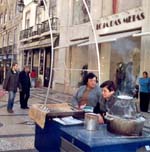Im "Café Beira Gare" gleich gegenüber vom Rossio Bahnhof mit seiner prunkvollen Fassade auf der einen und dem Teatro Dona Maria II auf der anderen Seite, gibt es immer ganz frisch zubereitete portugiesische Speisen zu unglaublich kleinen Preisen. So geht es denn auch zu wie in einem Taubenschlag. Es herrscht ein ständiges Kommen und Gehen und besonders in der Mittagszeit kann es recht voll sein. Doch ein Plätzchen am Tresen findet sich immer...