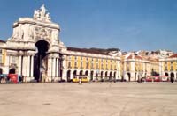Die elegante Rua Augusta ist im Sommer bevölkert von jungen Menschen, die aus aller Herren Länder hierher kommen. Ein lebhaftes Sprachengewirr zeugt davon. Dazwischen laufen bunte Gestalten auf Stelzen herum, bieten Straßenmusikanten ihr Können dar, bewegen sich weißgepuderte, vollkommen in weiße Stoffe gehüllte Gestalten vollendet elegant wie im Tanz zu einer nur für sie hörbaren Musik... Die Hauptflaniermeile mündet am imposanten Triumphbogen in die Praça do Comércio, einen weiten Platz am Ufer des Tejo. Vor wenigen Jahren noch als Parkplatz genutzt, wirkt er heute ohne die vielen Autos eigentümlich leer.