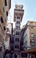 Der 1902 von Gustave Eiffels Schüler Raúl Mesnier de Ponsard entworfene Elevador de Santa Justa verbindet auf stählern filigranen Füßen den Bairro Alto mit dem Rossio. Im Augenblick muss der Weg hinauf aber entweder zu Fuß oder auch - weniger mühsam - mit der Straßenbahn bewältigt werden, da eine tief klaffende Baugrube gerade den Übergang verhindert. Eine Fahrt in dem holzgetäfelten Fahrstuhl sollte man sich aber trotzdem nicht entgehen lassen... Der Ausblick ist herrlich und in dieser Höhe sieht sich der Betrachter auf einer Ebene mit den Ruinen des um das Jahr 1400 erbauten Klosters am Largo do Carmo. Zur Erinnerung an das verheerende Erdbeben im Jahr 1755 wurde es nicht wieder aufgebaut. Ein Spaziergang durch das Sonnenlicht durchflutete "Kirchenschiff" ruft mit leisem Schauder das Wissen um die Grenzen allen irdischen Lebens wach... und die mit majestätischer Eleganz auf samtweichen Pfoten zwischen den restlichen Fragmenten der Außenmauern graziös dahinschreitenden Katzen machen mit der ihnen eigenen Autorität deutlich, wer heute hier zu Hause ist!