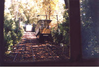 Während wir auf die Abfahrt der Seilbahn warten, hoffe ich als neugieriger Mensch und Technik-Freak einen Blick in das Maschinenhaus der so vorsintflutlichen Bahn werfen zu können. Allein, das "Maschinenhaus" entpuppt sich als riesiges Wasserbassin. Von diesem Bassin aus wird die jeweils am Berg stehende Bahn mit 3.500 Liter Wasser gefüllt: es hat durchaus Ähnlichkeit mit dem Tränken eines Fossils. Der "Fahrer" ist dann nur noch der Mann an der Bremse, er löst selbige nach einer kurzen Kommunikation mit dem Bremser des Talfahrzeuges (standesgemäß hätte das wohl mit Rauchzeichen geschehen müssen), und die Bahn setzt sich langsam, aber heftig rumpelnd in Bewegung. Wieder unten angekommen, wird der bahninterne Wassertank geöffnet, wodurch sich der restliche feuchte Inhalt laut glucksend der Natur übergibt. Auch sehr spannend, dieser kleine Ausflug zu den Anfängen der technischen Revolution.