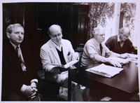 V.r.n.l.: Staffa (ev. Historiker), Fritz Teppich, Moses Krause (Verleger), Mario Offenberg (Sprecher der Orthodox-Jüd. Gemeinde)
