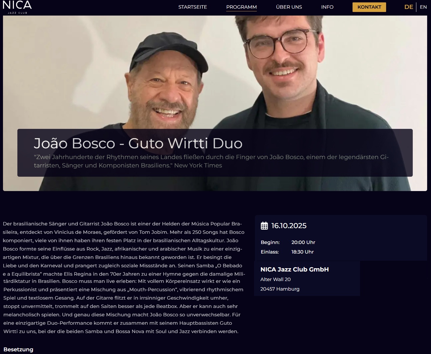 Brasilianischer Jazz im Nica Jazz Club neben dem Hamburger Rathaus am 16.10.2024