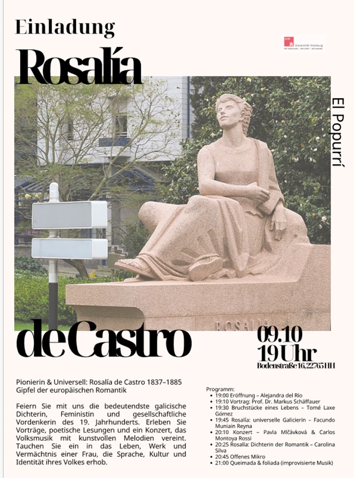 Veranstaltung UNI Hamburg: Rosalía de Castro (El Popurrí), Vortrag und Musik am 9.10. in der Bodenstr. 16