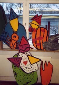 Legende vom Hahn von Barcelos als Pappskulpturensemble