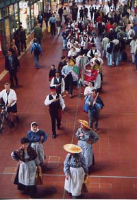 Geteilte Welten - Hamburg und MigrationEin Projekt des Museums der Arbeit und Portugal in Hamburg - Information und Aufrufvon Jürgen Ellermeyer *Einwanderung aus Portugal nach Hamburg hat wiederholt Aufmerksamkeit gefunden - speziell mit den Sefarden im Rahmen jüdisch-deutscher Geschichte. Diese Einwanderer der Frühen Neuzeit - Flüchtlinge aus religiösen Gründen - zählten zu den auf Dauer Willkommenen, weil überwiegend vermögend und speziell durch ihre Handelsbeziehungen und -tätigkeit dem dominierenden Wirtschaftszweig dienlich. Einzelne brachten es zu bis heute währender Prominenz. Auch Ausstellungen haben das gewürdigt. Fast 500 Jahre später erfolgt neuerliche Bewegungen in dieser Richtung: mit vereinzelten und gruppenweise Flüchtlingen, Emigranten aus politischen Gründen (Salazar-Diktatur, Beginn der Kolonialkriege 1961), und zunehmend vielen Arbeitssuchenden, die als "Gastarbeiterinnen" und "Gastarbeiter" kommen, seit 1964 durch einen Anwerbevertrag der Regierungen angeregt und reguliert, nach dem Anwerbestopp von 1973 und der "Nelkenrevolution" 1974 immerhin noch per Familiennachzug und nach dem EG-Beitritt 1986, der die Wirtschaftssituation im Lande teilweise verbesserte, dann im Rahmen der Freizügigkeit innerhalb der EU nach der Vollmitgliedschaft 1992. Den in Hamburg lebenden Menschen portugiesischer Herkunft oder Vorfahren (ca. 10.000 als "Ausländer" laut Pass) sind solche Hinweise unnötig, aber wenn das Museum der Arbeit zu mehr Kenntnis über die Bewohner dieser Stadt und ihre Geschichten und damit zu mehr Gelassenheit im Umgang miteinander beitragen möchte, dann wird der Blick der Teilnehmenden und Besuchenden sich auch besonders auf diesen Zweig der Einwanderung richten. Insgesamt erfolgt sie ja bis heute in immer neuen Schüben oder eher unscheinbar, aus den verschiedensten Gründen und Regionen nah und fern. Diese ganze Vielfalt ist natürlich nicht in einer einzigen Sonderausstellung nachspürbar vorzuführen. Aber Ermunterung zur Erkundung soll es für möglichst viele Menschen auch mit ausgewählten Beispielen geben. Dazu werden angesichts der bescheidenen Sammlungsbestände oder einschlägiger Ausstellungsteile in Hamburger Museen und unter Achtung der beim Hamburgischen Museum für Völkerkunde schon betriebenen Aktivitäten gerade Lichter auf die Einwanderung aus Portugal gehören. Wenn uns nicht, etwa an Zahlen orientierte, systematische Betrachtung zu solcher Akzentsetzung lenkte (Hamburg ein bedeutender Ort für portugiesische Einwanderung in Deutschland), dann können die verschiedensten Anlässe dafür sprechen - so, dass auf einer Tagung der Forschungsstelle für Zeitgeschichte in Hamburg über "Fremde in Hamburg - fremd sein in europäischen Großstädten" ein Vortrag auf Fragen des "transnationalen" Verhaltens gerade bei in Hamburg Lebenden portugiesischer Herkunft einging, dass wir in unserer begrenzten Interview-Reihe (bis jetzt rund 60 Gespräche) - u.a. wegen Zugangs zu der Fabrik, in deren ehemaligen Barmbeker Gebäuden sich das Museum der Arbeit entwickelt, also der New-York Hamburger Gummi-Waaren Co. in Harburg - erste intensive Gespräche mit Eingewanderten aus Portugal führten, dass wir den eindrucksvollen Zug beim 10. Portugiesischen Kulturfestival, dem Arraial Português, von St. Georg bis zum Rothenbaum filmend und fotografierend begleiten konnten, und dass schließlich ein Glücksfall von Fotoüberlieferung uns sprechende Eindrücke gerade von der Ankunft portugiesischer "Gastarbeiter" in Hamburg-Harburg lieferte, wovon hier ein Beispiel gezeigt sei. Mit Dank für die Gelegenheit und In Vorfreude, auf dem Wege der Portugal-Post nicht nur Interessenten an der kommenden Ausstellung zu erreichen, sondern Ideen und vor allem Objekte mit (zu) sprechender Geschichte - Fotos, Schriftdokumente, Gegenstände - zu bekommen, hier noch etwas zum Projekt überhaupt. In der "Werkstatt für Migrationsgeschichten" führen wir seit Monaten, jetzt vorläufig letzte, Interviews mit Eingewanderten und Eingeborenen. Während Ergebnisse der Arbeit in Workshops mit Jugendlichen bereits in der Ausstellungs- und Aktionswoche "Ansichtssache!? Junge Hamburgerinnen und Hamburger zur Einwanderung" im Herbst präsentiert wurden, nähern wir uns dem Ziel des in internationaler und Hamburger Kooperation betriebenen Projektes. Im Museum der Arbeit wird im Oktober 2003 eine Sonderausstellung eröffnet und mit Veranstaltungen über mehrere Monate ein Forum bieten: offen für Vielfalt von Herkunft und Lebensformen, für Erfahrungen und Meinungen. Die dinglichen, verbalen und sinnlichen Bezüge auf das kulturelle Neben- und Miteinander in der Stadt sollen Nachdenken und Verhaltensanstöße fördern, mit denen Diskriminierung und Rassismus entgegenzutreten und mehr Achtung untereinander zu gewinnen ist. Der Arbeitstitel "Geteilte Welten" läßt die Einen, eher Älteren, Trennlinien wiederfinden, die sie nicht übertüncht sehen, sondern überwinden möchten. Andere, eher jünger, betonen, dass es für sie in Hamburg oder zwischen Hamburg und einem Herkunftsland keine scharfen Scheidungen gebe. Daß dies Begriffspaar fast nur negativ verstanden wird, erinnert daran, daß der wünschenswerte Entwicklungsgang von "Geteilte Welten" über "Mitgeteilte Welten" zu "Miteinander geteilte Welten" kein selbstverständlicher ist. Schließlich kann man beklagenswerte Zustände, Regeln und Verhaltensformen in Hamburg nicht leugnen. Andererseits machen Geschichten Vieler, darunter Deutschbürtiger mit Binnenwanderung, Mut zu Neugier und Veränderungen. Das Museum nimmt die Herausforderung an mit Blick sowohl auf individuelle Lebensgeschichten insbesondere seit der Zeit der "Gastarbeiter" und auf Entfalten von Identitäten mit "Herkunft" als nur einem von mehreren persönlichkeitsprägenden Momenten, als auch auf Stadtentwicklung - rückgehend auf einige historische Schübe mit und dank "Fremden", sei es für den Handel vor 1800 oder für die Industrie vor 1900, und hin zu jüng