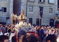 Brautpaare, Sardinen und ein Heiliger:Das Lissabonner Stadtfest Santo AntónioVon Barbara Mesquita * Der Juni ist in Portugal der Monat, in dem mit den Feiern der "santos populares", der Volksheiligen Sankt Antonius, Sankt Peter und Sankt Johannes, die Sommerfeste beginnen. Stadtpatron der Hauptstadt Lissabon ist der Heilige Antonius, zu dessen Ehren alljährlich am 13. Juni eine Prozession stattfindet. Am Vortag aber wird ein großes Fest gefeiert, bei dem man leicht unter die Haube geraten kann. Lauer Wind, blankgeputzter Himmel. Am Largo da Madalena, wo die stickige Mittagsluft der Lissabonner Unterstadt schon langsam erträglicher wird, weil es hügelan geht, ist alles abgesperrt; ein roter Teppich bedeckt die Straßenbahnschienen der berühmten Linie 28. Ordnungspolizisten in dunkelblauer Uniform und hellblauem Hemd, mit glänzend schwarzen Schnurrbärten, wettergebräunter oder weingeröteter Haut und zuweilen einem gemütlichen Bauch, weisen die Schaulustigen hinter die Gitter beiderseits der engen Gasse, die sich an der Igreja da Madalena vorbei hochschlängelt ins Herz des maurischen Stadtteils Alfama und zum Ziel des roten Läufers: der Kirche des Lissabonner Stadtheiligen Santo António. Eine bunt zusammengewürfelte Zuschauermenge, in der alle Altersgruppen und Hautfarben vertreten sind und Portugiesisch in allen Färbungen des ehemaligen Kolonialreichs zu hören ist, hat sich an diesem strahlenden Dienstagnachmittag im Juni des Jahres 2001 eingefunden. Viele sind offenkundig alteingesessene Bewohner des Viertels, das zwar eines der malerischsten, aber auch der ärmsten der Stadt ist. Gleichfalls gekommen sind viele Touristen. Die Stimmung: heiter beschaulich. Einer nach dem anderen fahren nun die Wagen vor, allesamt blankgewienerte Oldtimer, denen die Auserwählten, in weiße Spitzen und Tüllwolken gehüllt, entsteigen: zehn junge Bräute, die auf Kosten der Lissabonner Stadtverwaltung in wenigen Augenblicken im Namen des Heiligen Antonius, der im Volksmund auch der "Heiratsstifter" genannt wird, in dem nach ihm benannten Gotteshaus getraut werden sollen. Genau dort, wo die als einzige zum Besitz der Stadt gehörende Igreja de Santo António steht, befand sich einst das Geburtshaus jenes Heiligen, dem die Lissabonner noch heute aufs innigste zugetan sind. Ihm zu Ehren findet alljährlich am 13. Juni eine Prozession durch die geschmückten Gassen der historischen Stadtviertel Alfama und Graça statt, der am Vortag ein großes Stadtfest vorangeht: mit Wein und gegrillten Sardinen, die in den verzierten Innenhöfen der schmalen, pastellfarben gekalkten Häuser feilgeboten und verspeist werden, Schwof im Hof und Folkloregruppen aus allen Lissabonner Stadtteilen, die tanzend durch ihre Viertel zu einer großen Parade auf der Avenida da Liberdade, der ehemaligen Prachtstraße in der Unterstadt, ziehen. Und seit einigen Jahren auch wieder mit dem Brauch der unter dem Schutz des Heiligen geschlossenen Ehen. Die Geschichte und der Kult um den Heiligen Antonius, der an dieser Stelle um das Jahr 1190 als Fernando Bulhão zur Welt kam, sind in einem der Kirche angegliederten kleinen Museum dokumentiert. Bereits in seiner Jugend entschied sich der spätere Stadtpatron für ein religiöses Leben und wurde sodann in Italien unter Franz von Assisi, dem Begründer des Franziskanerordens, zu einem im Mittelalter berühmten Prediger. Schon ein Jahr nach seinem Tod am 13. Juni 1231 in Padua wurde er heiliggesprochen. Besonders in Portugal fanden seine Predigten wie die "Rede an die Fische" begeisterte Resonanz beim frommen Volk, und schnell begannen sich zahlreiche Legenden um den als barmherzig geltenden Heiligen zu ranken, die bis heute nachwirken. So zum Beispiel der Glaube, Sankt Antonius sei der beste Helfer in Liebesdingen. Aus dieser sehr populären Überzeugung, die noch heute viele gläubige (und auch nichtgläubige) Portugiesen dazu veranlasst, in den zahlreichen Kirchen der Stadt Kerzen für den Heiligen aufzustellen, um ihrem Glück in der Liebe auf die Sprünge zu helfen, wurde in den fünfziger Jahren die ebenso publikumswirksame wie ideologieträchtige Idee der organisierten Hochzeiten, der casamentos de Santo António, geboren. Von 1958 an, mitten in der Zeit der Salazar-Diktatur, wurde alljährlich, auf Initiative der Tageszeitung Diário Popular und unter Mitwirkung der Stadtverwaltung, ausgewählten mittellosen Paaren, die es sich eigentlich nicht leisten konnten, das Heiraten ermöglicht. Firmen und andere Geldgeber finanzierten die Hochzeit. Diese Tradition wurde bis zur Nelkenrevolution im April 1974, mit der die Diktatur in Portugal ein Ende fand, beibehalten, dann im Zuge der politischen Veränderungen abgeschafft und erst 1997 von João Soares, dem Vorgänger des augenblicklich amtierenden Bürgermeisters, neu belebt. Allerdings, wie Ezequiel Marinho, Architekt bei der Lissabonner Stadtverwaltung, versichert, ohne die erzkonservativen, paternalistischen Ingredienzien von früher, als dem Brautpaar von seinen Schirmherren auch noch Arbeit und Wohnung beschafft wurden und die Braut sich von einem Arzt untersuchen lassen musste, ob sie denn noch Jungfrau sei. Und neben den zehn Paaren, deren Trauzeremonie in wenigen Minuten beginnen soll, gebe es dieses Jahr zudem noch sechs weitere, von der Stadtverwaltung gesponserte Eheschließungen, die nicht katholisch seien, darunter sogar eine moslemische, beeilt Marinho sich hinzuzufügen, um den zeitgemäßen, multikulturellen Charakter, den der Brauch heute hat, zu betonen. Inzwischen haben die Bräute, von resoluten Damen reiferen Alters geführt, über den roten Teppich den Eingang erreicht und steigen die Stufen zur Kirche hinauf, zu der selbstverständlich nur geladene Gäste, das Fernsehen und einige wenige ausgewählte Journalisten Zutritt haben. Von den Herren, die sie ehelichen sollen, keine Spur. Eine riesige, auf dem kleinen Platz vor der Kirche installierte Videoleinwand sorgt indes dafür, dass der Zuschauermenge dra