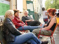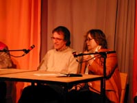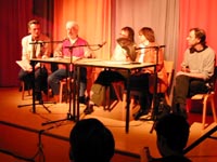 A "Revolução dos Cravos" - 30 anos depoisFoi uma grande festa, a 1 de Maio, na Werkstatt 3 em Ottensen, assistida por muitos amigos de Portugal e sócios nossos. Já começou da parte da tarde com a exibição do filme "Torre Bela". Entre a assistência, o cantor Francisco ("Chico") Fanhais que arregalou o olho a ver-se no filme junto com o seu amigo José ("Zeca") Afonso a actuarem e cantarem nessa cooperativa emblemática. Depois foi a vez de Thorsten Kolle, redactor da Merian que apresentou a nova edição do volume sobre Lisboa. Leu textos sobre os acontecimentos do 25 de Abril da autoria de Walter Haubrich e Julia Knobloch, seguido pela jornalista Swantje Strieder a ler trechos do seu artigo sobre os imigrantes pretos da Cova da Moura. E Peter Koj contou como reuniu todo o material informativo apresentado nas últimas 24 páginas da edição. A seguir reuniu-se no pódio um painel a discutir os acontecimentos revolucionários e pós-revolucionários que mudaram o rumo do País: António Borralho da Werkstatt 3, o próprio Chico Fanhais, Luís Carvalho e Peter Koj. Antes do concerto de Chico Fanhais, ainda houve tempo para recarregar as baterias no restaurante, onde se servia uma feijoada bem típica. O concerto, que começou pelas 21 horas, foi o auge incontestado da festa. O Chico, apesar do desgaste (estava a dar concertos em Portugal e na Alemanha do Norte há praticamente uma semana) conseguiu captar o público com a sua voz bonita e as explicações dadas à cada canção. A festa foi organizada pela Werkstatt 3 em cooperação com a nossa associação. Outro contributo nosso foram os murais de Lisboa que já exibimos há 5 anos no Kulturhaus Eppendorf. Quem ainda não os conhece, pode mirá-los no restaurante onde vão ficar pendurados ainda algum tempo. |