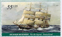 In einer Sonderausgabe der Deutschen Post ist eine Marke mit der "Rickmer Rickmers" herausgekommen, die lange Jahre als Segelschulschiff "Sagres" der portugiesischen Marine gedient hat. Die Marke ist im Wert von 55+25 Cent, und das Gemälde, das als Vorlage gedient hat, stammt vom Cuxhavener Maler Enno Kleinert.