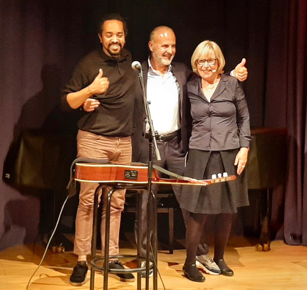 Luis Pacheco (Vorsitzender der PHG (m)) zusammen mit Barbara Mesquita und Bilan am Ende der Veranstaltung