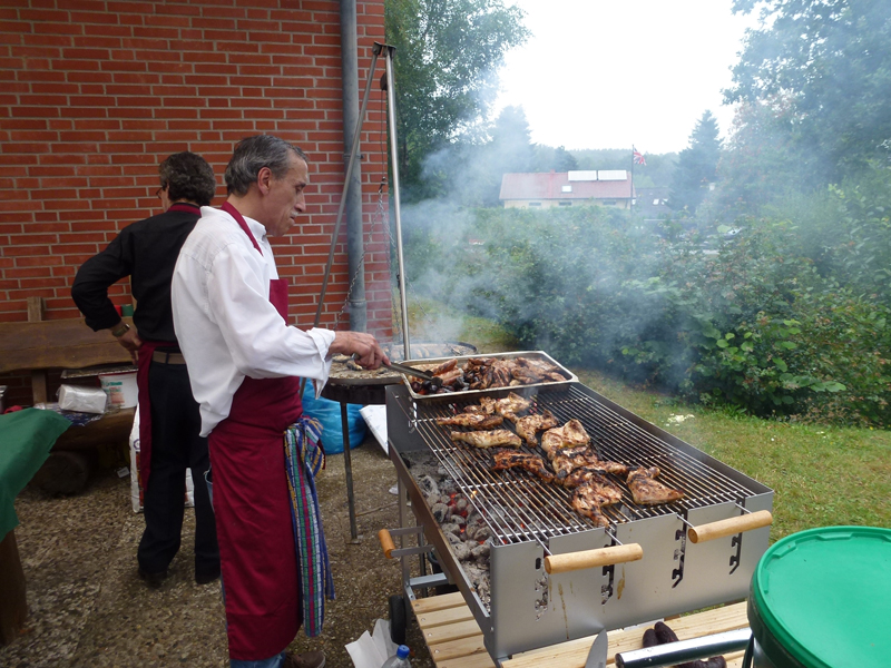 Wie schon in den Jahren 2012 und vorher wurde die Sardinhada erneut auf dem Gelände der Freiwilligen Feuerwehr von Tötensen ausgerichtet. Die anwesenden ca. 70 Gäste wurden von einem Service Team des " Júlio's Restaurant & Tapas Bar " bedient und waren begeistert über die gute Qualtität der gegrillten Sardinen, Febras, Bratwürste und Hähnchenteile. Die Veranstaltung war mit etwas Verspätung von unserem Vorsitzenden Dr. Peter Koj eröffnet worden. Die kapverdische Musikgruppe "Serenata" sorgte dann für Stimmung mit Musik von der Inselgruppe im Atlantik. Trotz einiger Regenschauer, waren die Gäste bester Laune und genossen Dank des aufgebauten Feuerwehrzeltes die angebotenen Köstlichkeiten und dazu den portugiesischen Wein und Bier. Es kam auch zu Tanzeinlagen einiger Gäste sowie eines Mitarbeiters von Júlio, der brilliant das Tanzbein schwang. Einer der alljährlichen Höhepunkte war der Verzehr des reichhaltigen Kuchenbuffets und eines tropischen Fruchtsalats, der direkt vom Hamburger Fischmarkt eingetroffen war. Gegen 17.00 Uhr löste sich die Veranstaltung langsam auf.